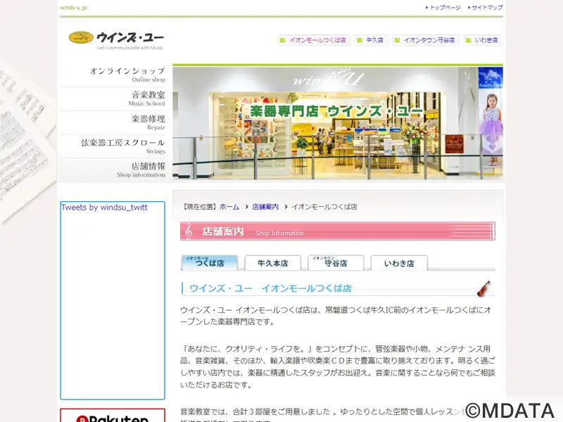 茨城県つくば市のイオンモールつくば1階に、2013年にオープンした総合楽器店。豊富な管弦楽器、ギター、楽器小物、メンテナンス用品、音楽雑貨、輸入楽譜、吹奏楽CDなどを取り揃えている。楽器や弓の無料点検から修理・メンテナンス、ピアノ調律、アフターケアまで、総合的なサポートを行っている。音楽教室は、30畳のサロンを含む3室があり、楽器に精通したスタッフが個人レッスンを中心に、あらゆる相談に応じている。