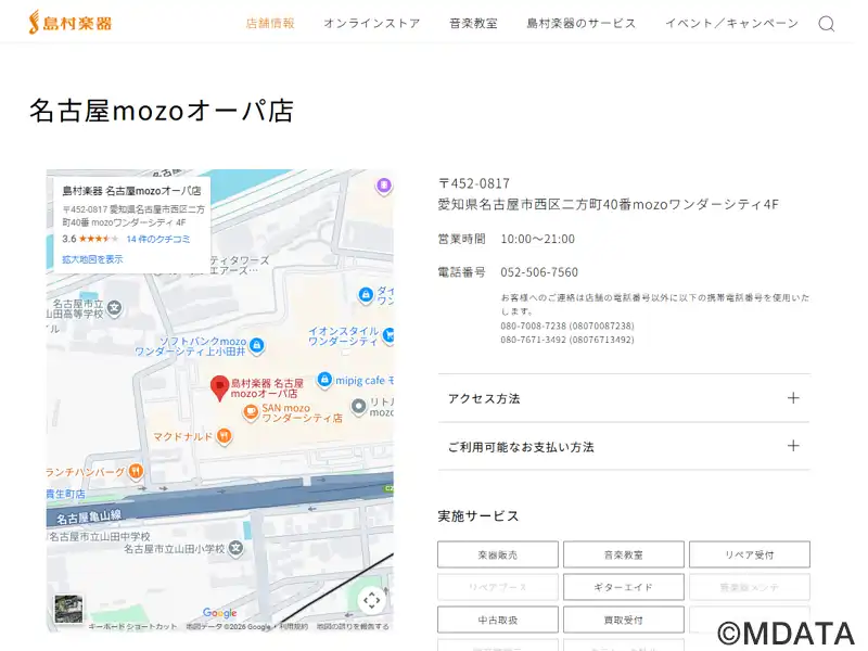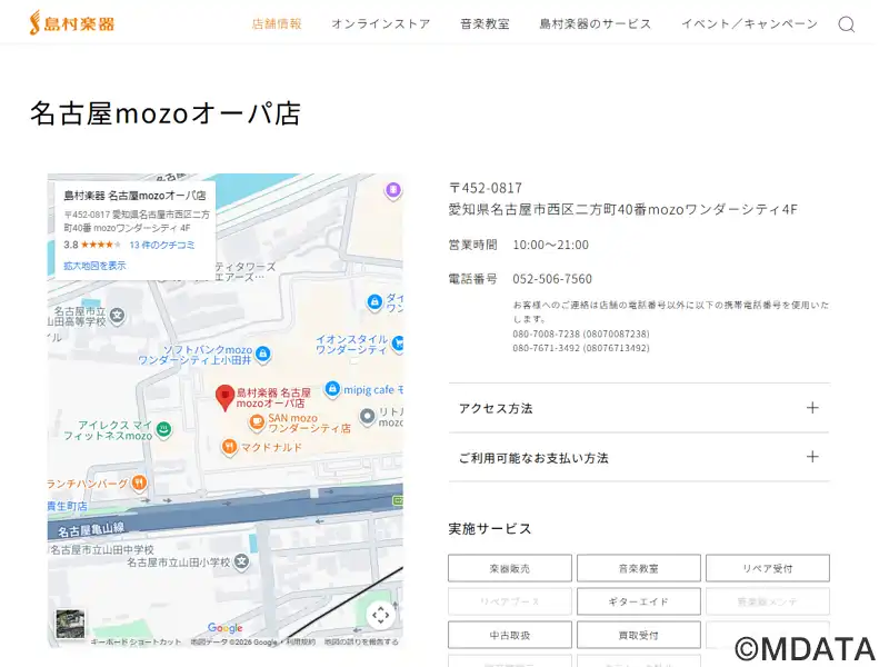 | 名称 | 島村楽器 名古屋mozoオーパ店 |
