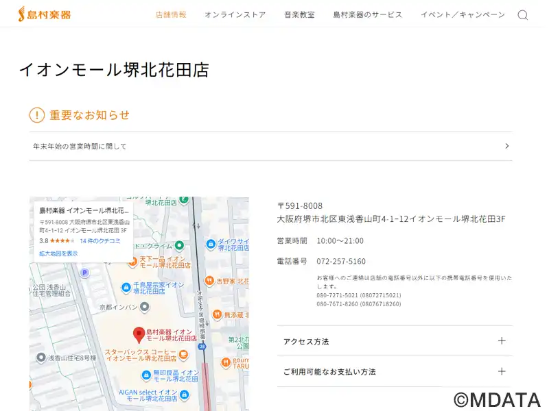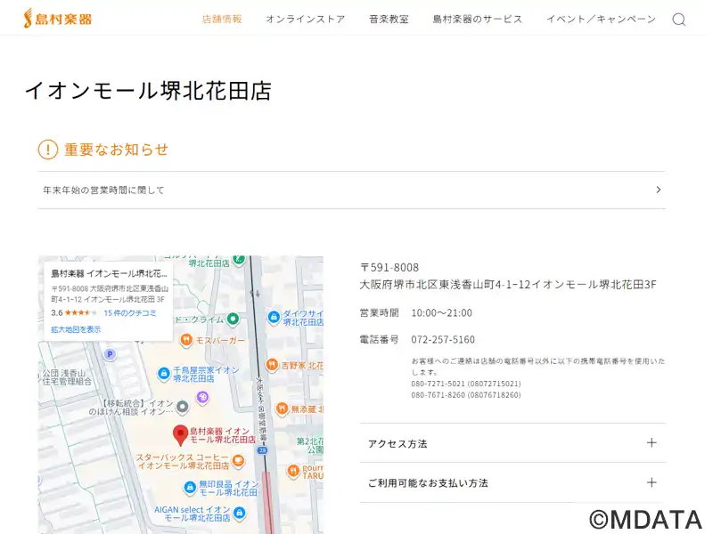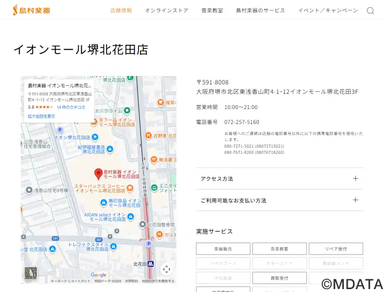 | 名称 | 島村楽器イオンモール堺北花田店 |