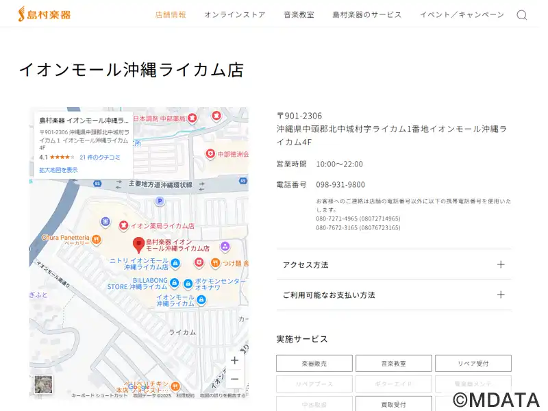 名称 | 島村楽器 イオンモール沖縄ライカム店 |
