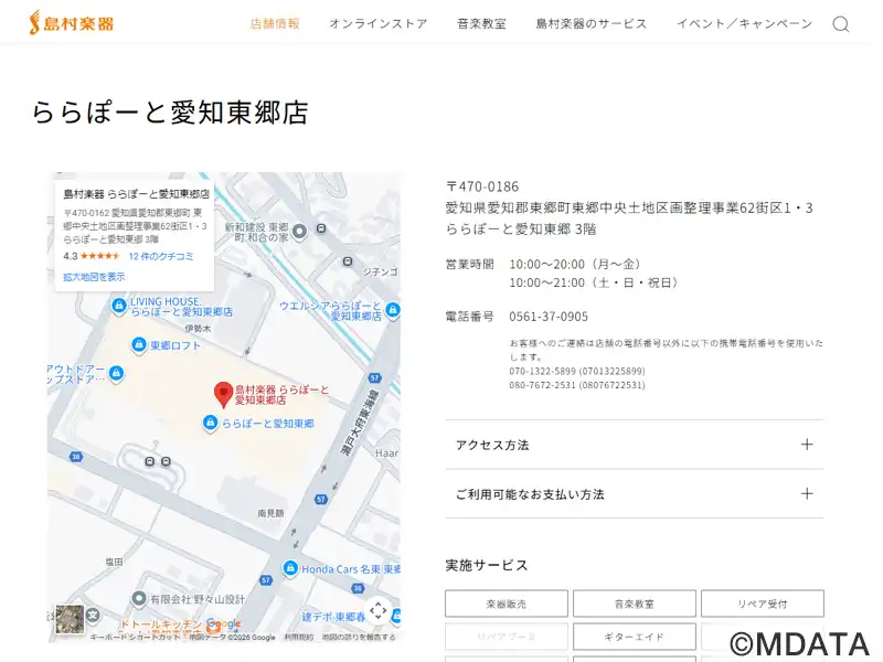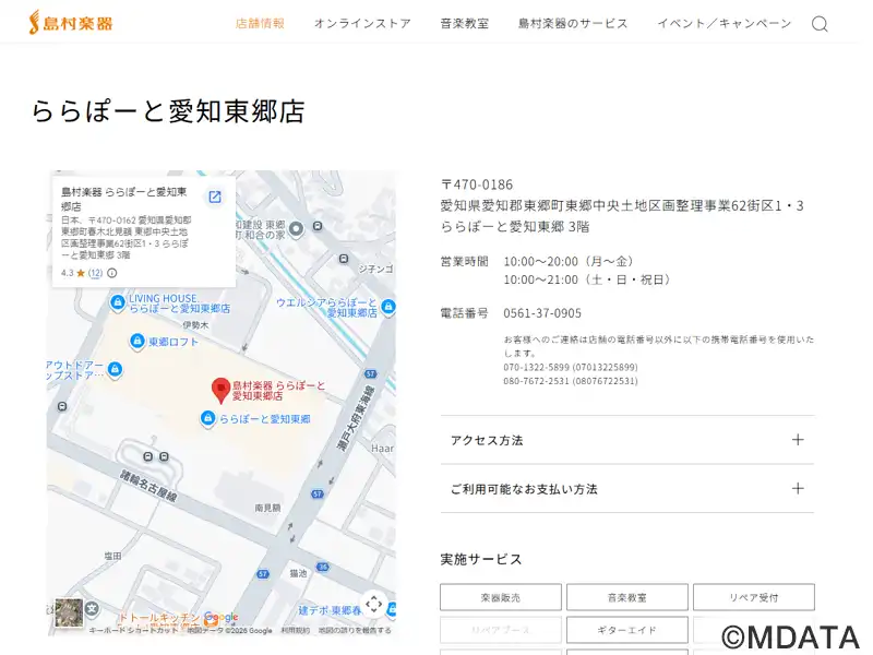 | 名称 | 島村楽器ららぽーと愛知東郷店 |