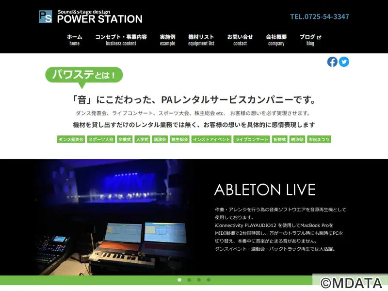 大阪和泉中央に所在する、1997年に設立された音響PA専門店。音響レンタル出張サービス、ステージ設営やオペレーション、撤去まで音に関するすべてをサポート。音響・照明・映像機材を持ち込み、最適なシステムのセットアップを低コストで提供する。音にこだわったサービスを心がけ、ダンスイベントでは、迫力の重低音とLED照明を同期させた演出が好評。学園祭、ライブ・コンサート、発表会、野外イベントなどに対応する。