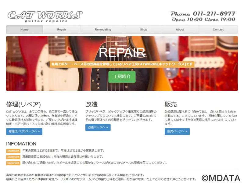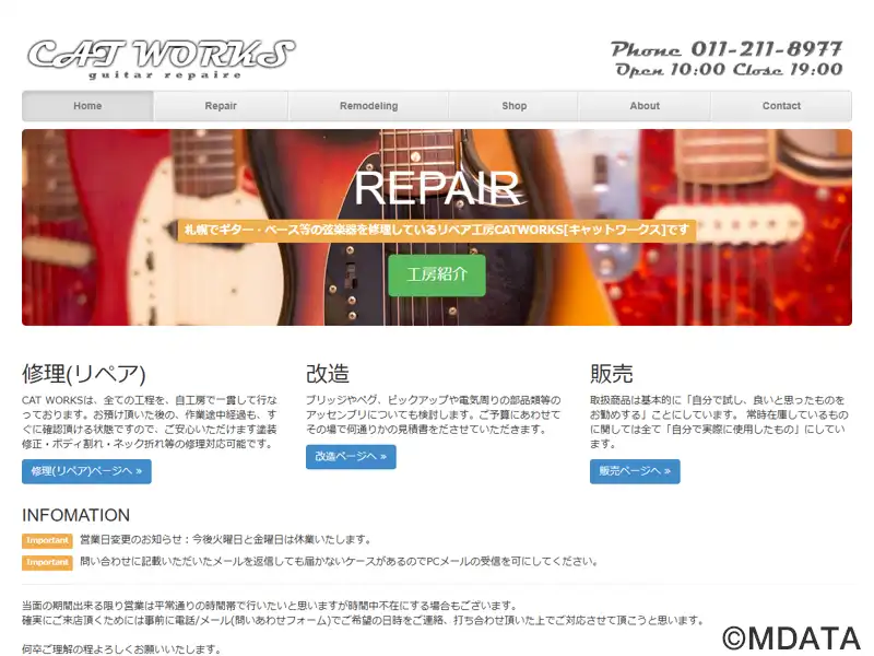 札幌市にあるギター、ベース、マンドリンなどの弦楽器販売・リペア工房。「自分で試し、良いと思ったものをお勧めする」ことを基本とし、在庫商品は、全て「自分で実際に使用したもの」としている。楽器修理についても、全ての工程を自工房で一貫して行なっており、作業途中の状況はいつでも確認することができる。ボディ割れやネック折れなどの修理や、ブリッジやペグ、ピックアップや電気周りの部品などの改造などにも対応可能する。