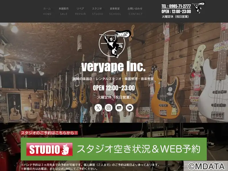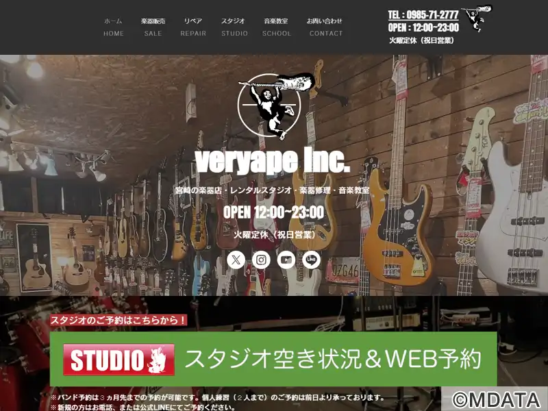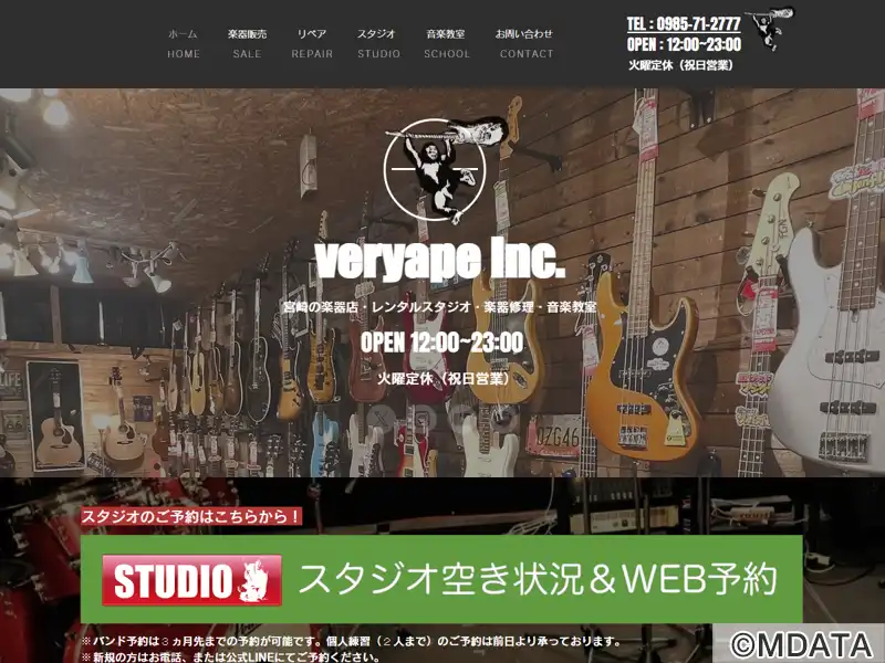 宮崎市にあるエレキ・アコースティックギター、ベース、ドラム、アンプを中心に取り扱う楽器店。ネック、フレット、ブリッジ、ピックアップの調整や、新品・中古楽器のセットアップ、クリーニング、フレットの磨き出し、擦り合わせなど、経験豊かなリペアマンによる修理、調整、改造により、楽器のポテンシャルを最大限に引き出す。3つのリハーサルスタジオを備え、レコーディング、PV撮影などのバンド活動サポートも行っている。