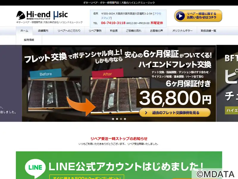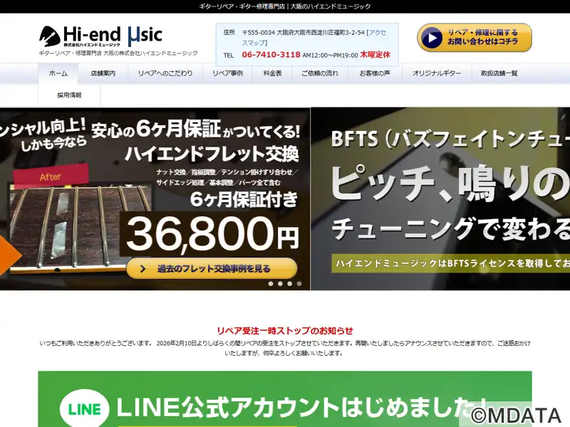 大阪千鳥橋にあるギターのリペア・カスタム専門店。創業時からの経験を生かし、プレーヤー目線で低価格かつ高品質なリペアを提供している。ドイツkavo社のルーターやピーターソンのストロボチューナーなど、こだわりの道具で高品質かつ効率的なリペアを実現している。また、バズフェイトンチューニングシステムLevel2公認ショップとして、信頼のおけるサービスを提供している。『早い・安い・上手い』をモットーにする。