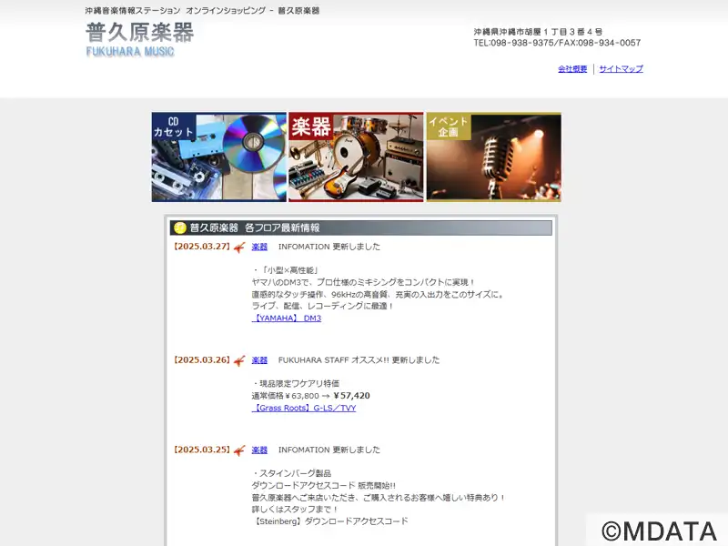 戦後沖縄を代表する作曲家の普久原恒勇(1932〜2022)が1955年に創業した沖縄コザの老舗楽器店。楽器、CD、DVD、アナログレコード、楽譜の販売や修理を行う。「普久原スタジオ」を併設して沖縄民謡・音楽の作品を発信している。また、ピアノの個人レッスン、ヤマハポピュラーミュージックスクール(ドラム、エレキギター、アコースティックギター、ウクレレ)などの音楽教室を運営。コンサートやイベントも開催している。