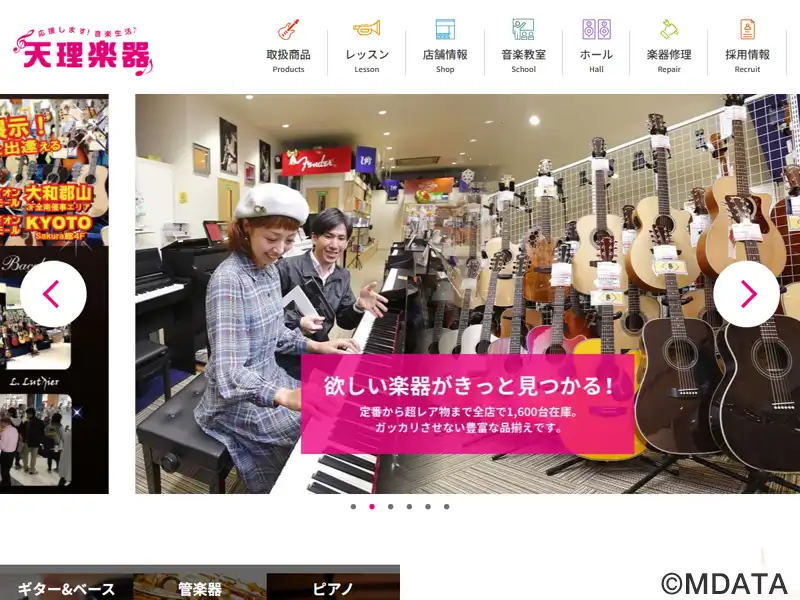奈良県橿原市にある県下最大級の総合楽器店。ギター、管楽器、弦楽器、電子ドラム、楽譜、アクセサリーなどを展示販売する。リペアラーも常駐で、アフタフォローも充実。天理楽器は、近畿エリア10店舗で全52科目の音楽教室を展開しており、橿原本店ではギター、管・弦楽器、ドラム、ボーカル、ジャズピアノなどのレッスンを開講。150名収容のライブホール「ホール音蔵」を隣接していて、ライブやリハーサルにも利用できる。