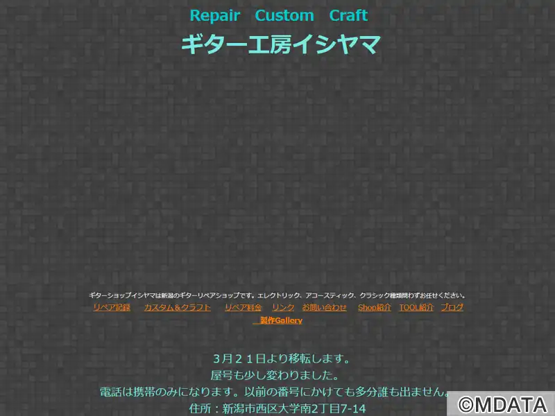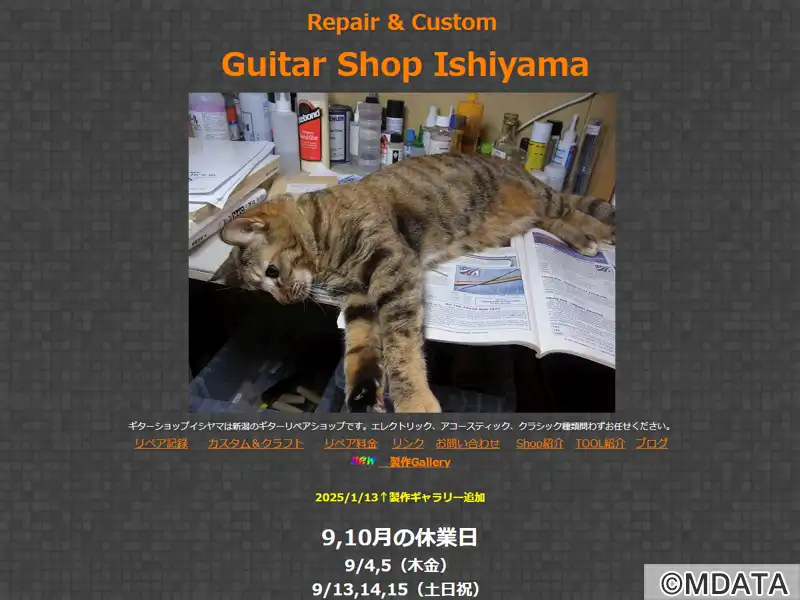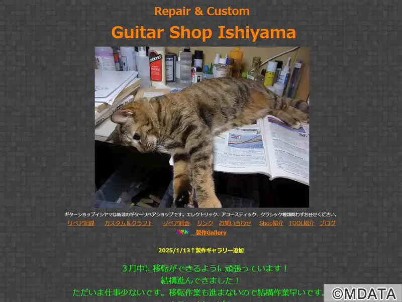 新潟市西区のギターリペア専門店。エレキ、アコースティック、クラシックギター、ウクレレなど幅広い弦楽器の修理・改造に対応。店主は長年の経験と高い専門技術を持ち、ネック折れや塗装、電気系統の修理、ナット・サドル・ペグ・ブリッジの交換、ピックアップの載せ替え、さらにはオリジナルギターの製作まで、丁寧な作業を行う。プロから一般ユーザーまで幅広く信頼を集め、楽器やアクセサリーの販売、委託販売にも対応する。