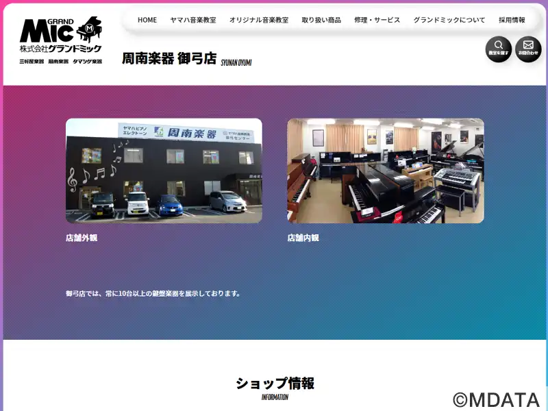 山口県周南市にある総合楽器店。ヤマハ特約楽器店として、周南エリア随一のピアノ展示ショールームに、新品・中古のピアノ、エレクトーンなどを揃える。その他、LM楽器、管楽器、弦楽器などを取り扱い、楽器修理や調律も行っている。また、店舗2階には音楽教室「御弓センター」を併設。1歳児から大人まで、さまざまなレベルと年齢に対応したレッスン「ヤマハ音楽教室」を提供する。店舗前には駐車スペースも完備している。