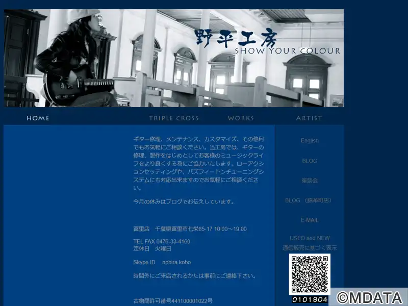 千葉県富里市にあるギター工房。ショップオーナーの野平和宏氏が欧州留学を経て習得したギタークラフトの技術を活かし、2006年に独立開業。自身のブランドTriple Crossでオリジナルのベースやギターを制作しており、サウンド面はもちろんデザインやディテールにもこだわり、国内外のプロミュージシャンからの信頼も厚い。また、修理、メンテナンス、カスタマイズの他、ギターリペア教室等も開催。幅広いニーズに応じる。